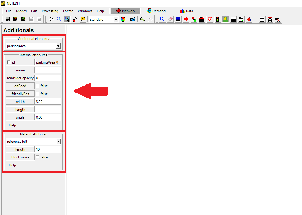 在检查子附加元素期间,可以更改父附加元素,可以在“Netedit属性”部分写入新父元素的ID,或者点击“设置新父元素”按钮,然后点击新的父元素。