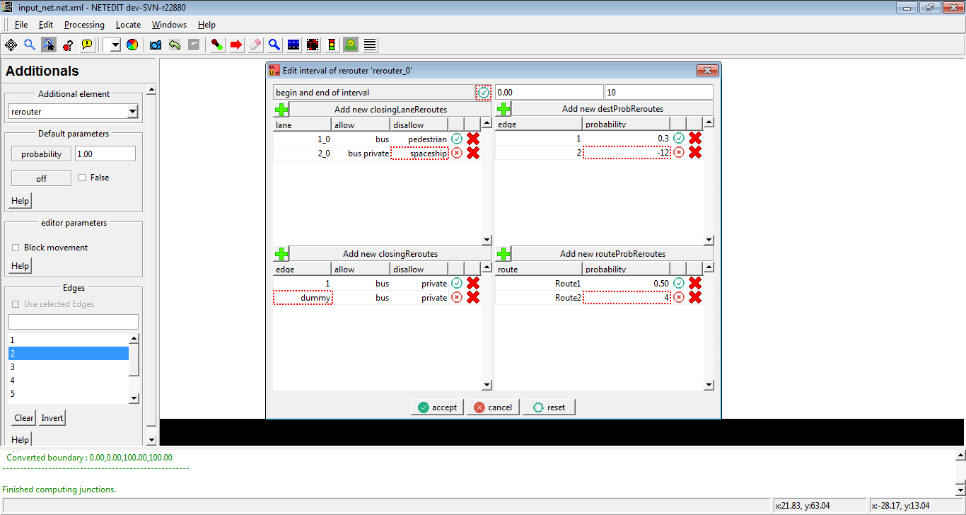 重定向器 (Rerouter) 在车辆移动到指定边缘时立即更改车辆的路径。