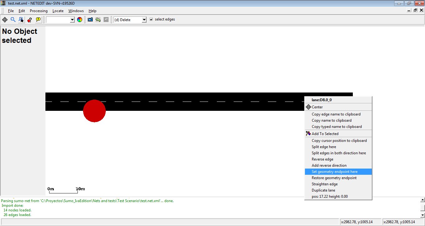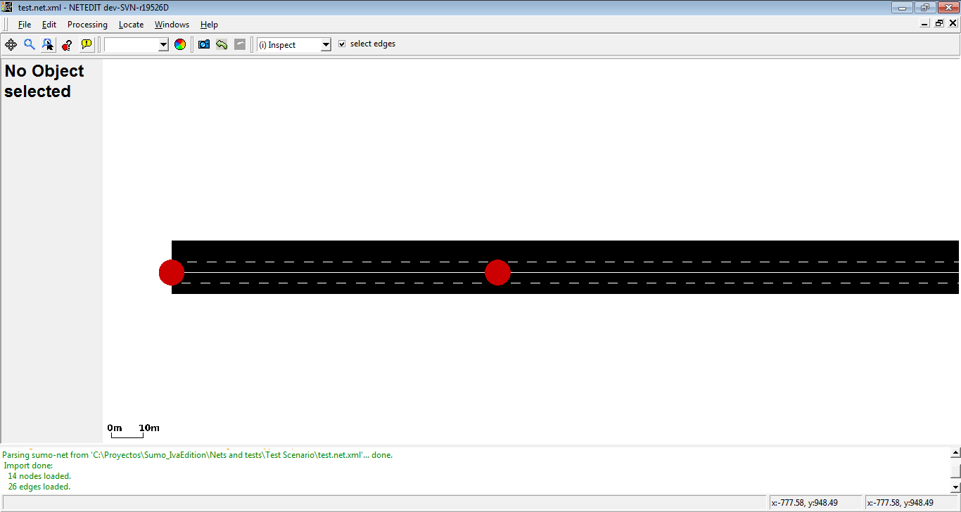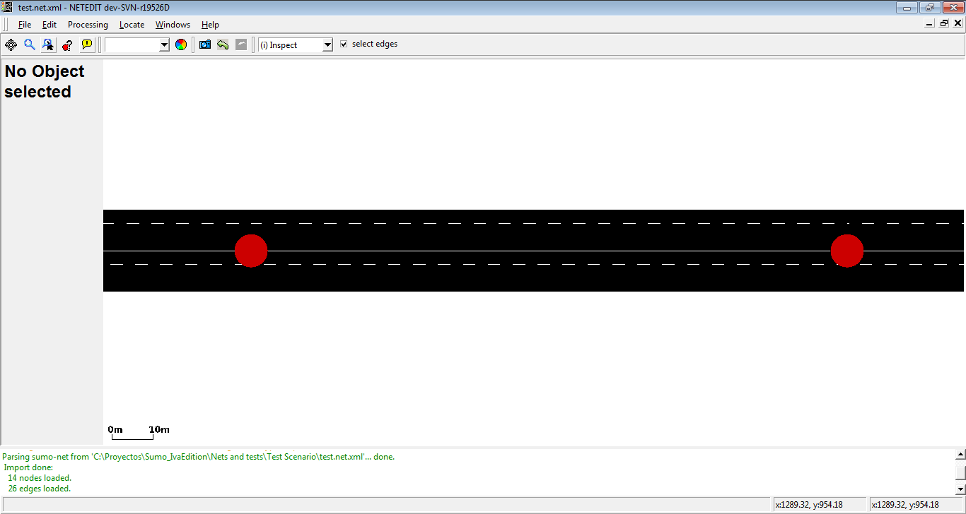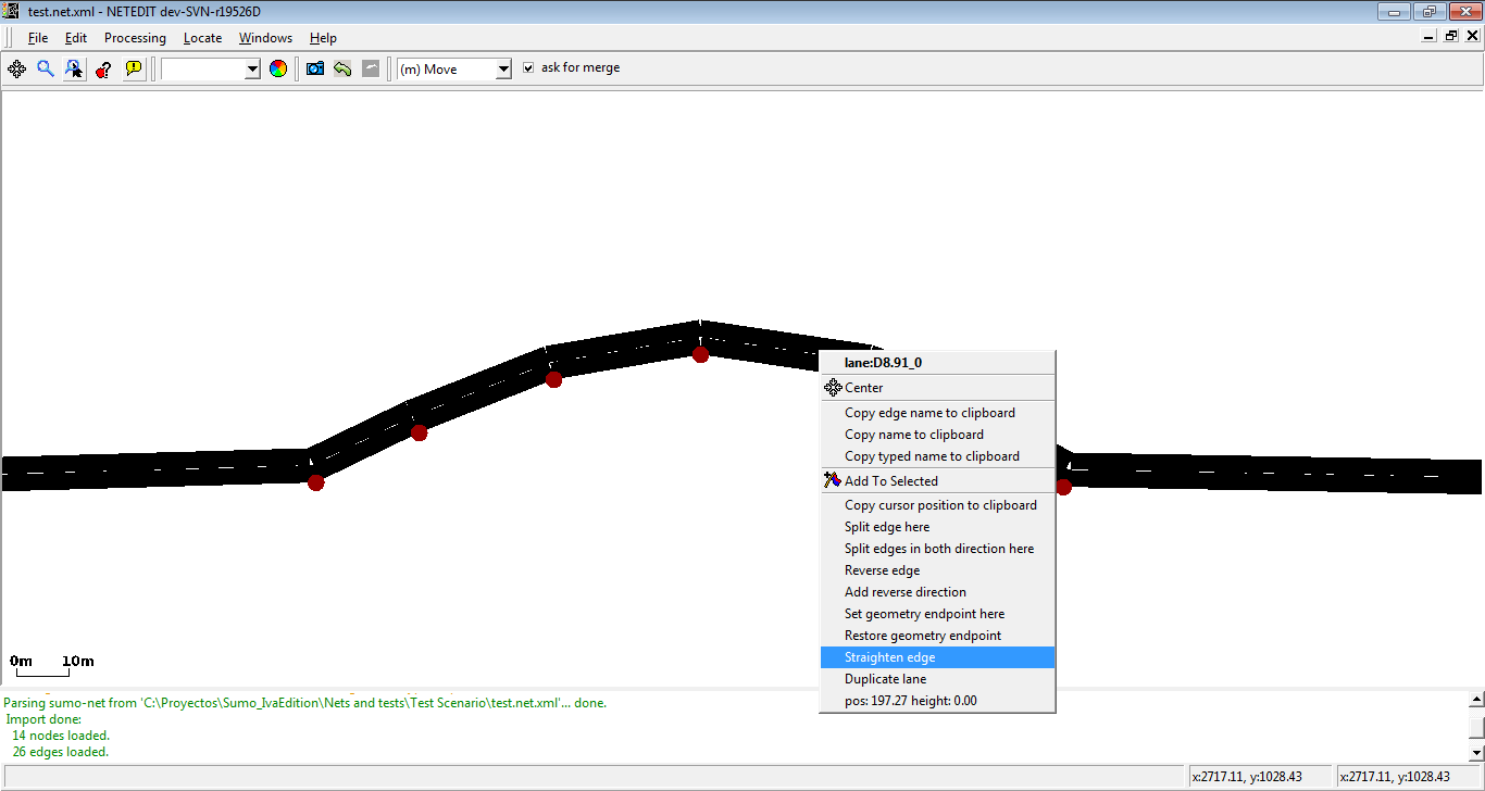专用车道(针对特定车辆类别 VClass)可以在检查模式下轻松添加。目前 netedit 支持人行道(仅允许 VClass="pedestrian" 的车辆)、自行车道(仅允许 VClass="bike" 的车辆)和公交车道(仅允许 VClass="bus" 的车辆)。请注意,每条边只允许有一种类型的专用车道(例如,一条边可以拥有两条专用车道,一条供公交车使用,另一条供自行车使用,但不能有两条或更多不同的公交车专用车道)。