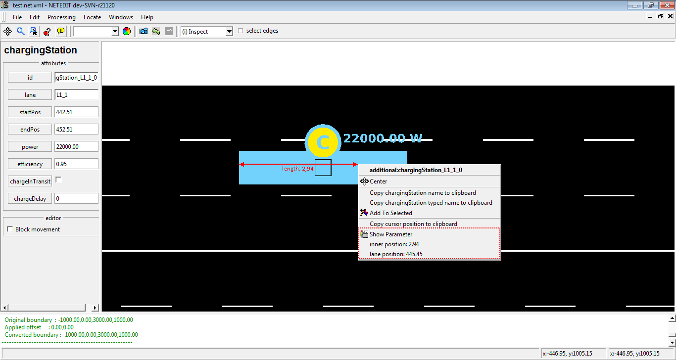 • 内部/车道位置 (inner/lane position): 放置在边或车道上的附加元素有两个不同的鼠标位置。内部位置是鼠标相对于附加元素长度的位置,车道位置是鼠标相对于车道长度的位置。
