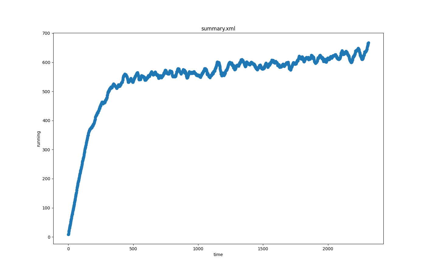 调用:python tools/visualization/plotXMLAttributes.py summary.xml -x time -y running,halting -o plot-running.png --legend