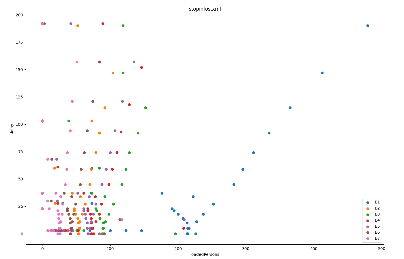 调用:python tools/visualization/plotXMLAttributes.py stopinfos.xml -i busStop -x loadedPersons -y delay --scatterplot --legend