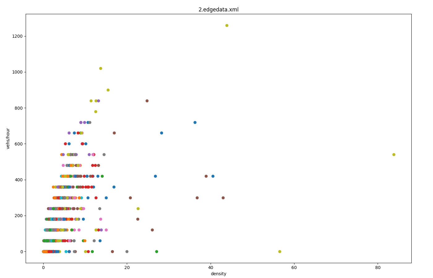 调用:python tools/visualization/plotXMLAttributes.py data.xml -i id -x density -y left --scatterplot --yfactor 60 --ylabel vehs/hour