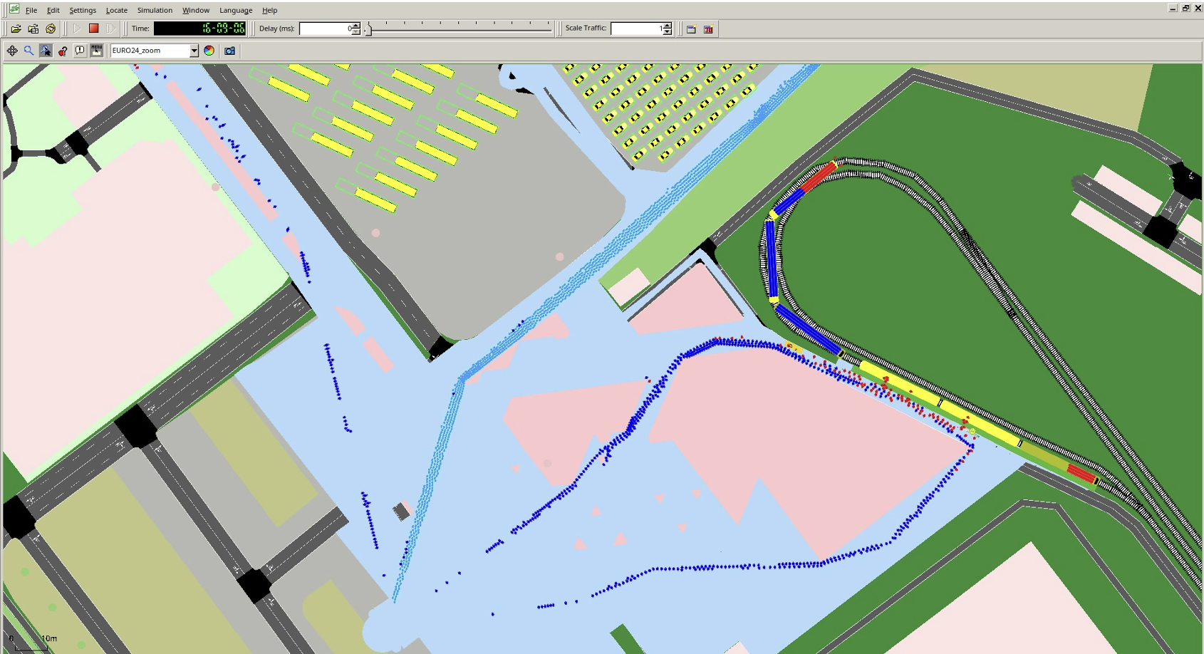 在分析城市区域(如火车站或大型活动的到达和离开阶段)的人群移动时,考虑交通相关方面至关重要。 列车的频率和容量、列车车门的位置以及交叉口汽车与行人的相互作用等因素显著影响行人的动态。 为了全面研究此类场景,包括交通和行人动态,JuPedSim 的基本功能已被集成到 Eclipse SUMO 中。