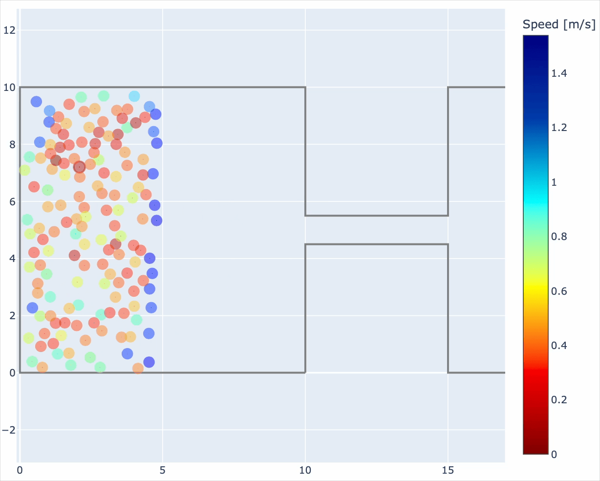 尽管理论上可以使用其他 JuPedSim 模型,但迄今为止只有 CollisionFreeSpeedModel 经过了广泛测试。